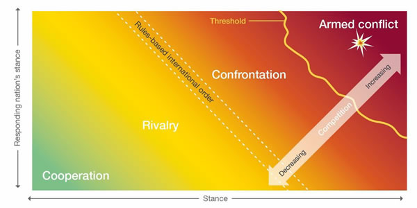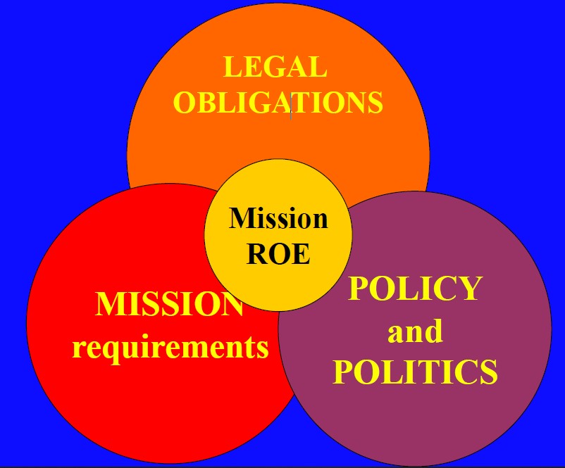 DURING PEACETIME, the use of force is permitted in self defence , in the exercise of law enforcement authority, and to accomplish operations or missions specifically authorised by a higher national authority or other governing body.